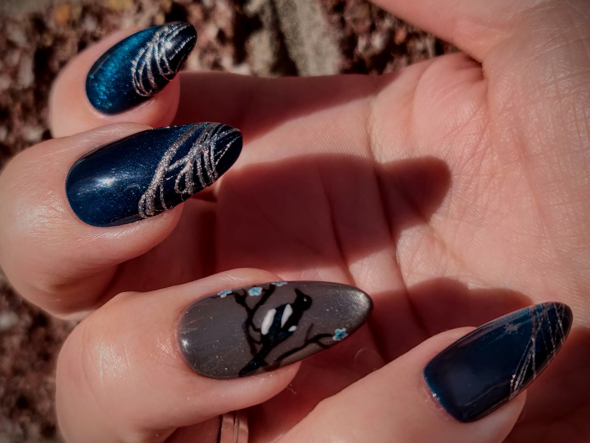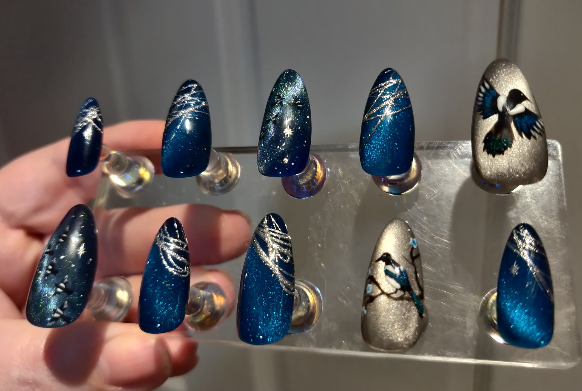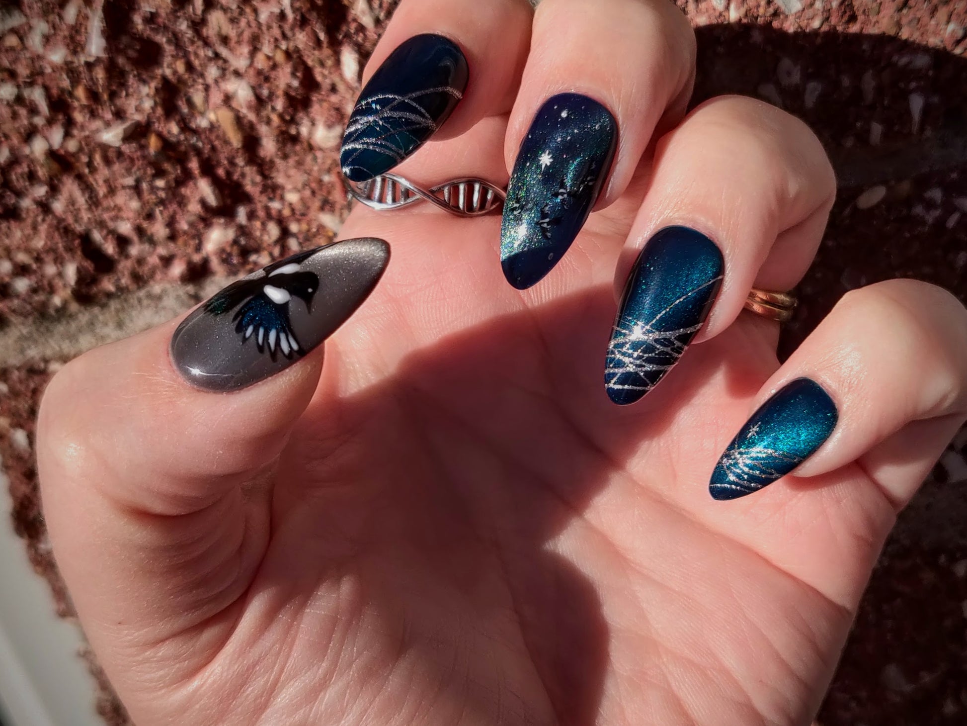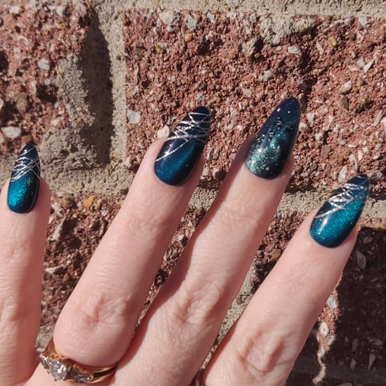 Whether you enjoy the folklore or just like birds and outer space (🙋♀️ I'm all three!), this set's gorgeous teal cateye and irridescent magpies are sure to catch your eye.