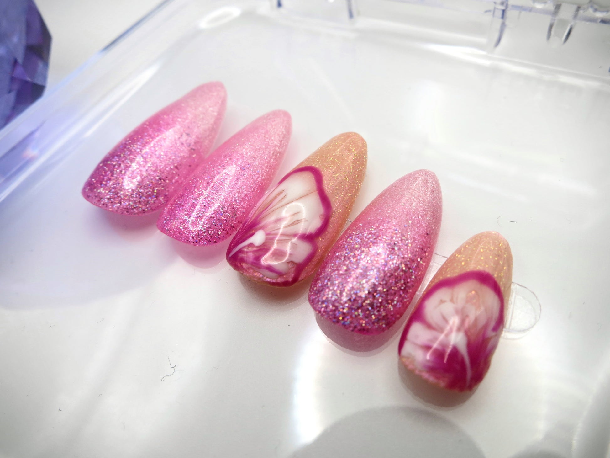 As for press-ons from Amazon, Walgreens, Temu, Shein...they are typically machine printed on thin, low quality tips that will bend and flex on removal, making them unusable a second time. Trust me, I started buying press-ons from Walmart decades ago before learning to do my own Gel X. Yes, they can look nice initially, but the prints will wear off and they won't last.
