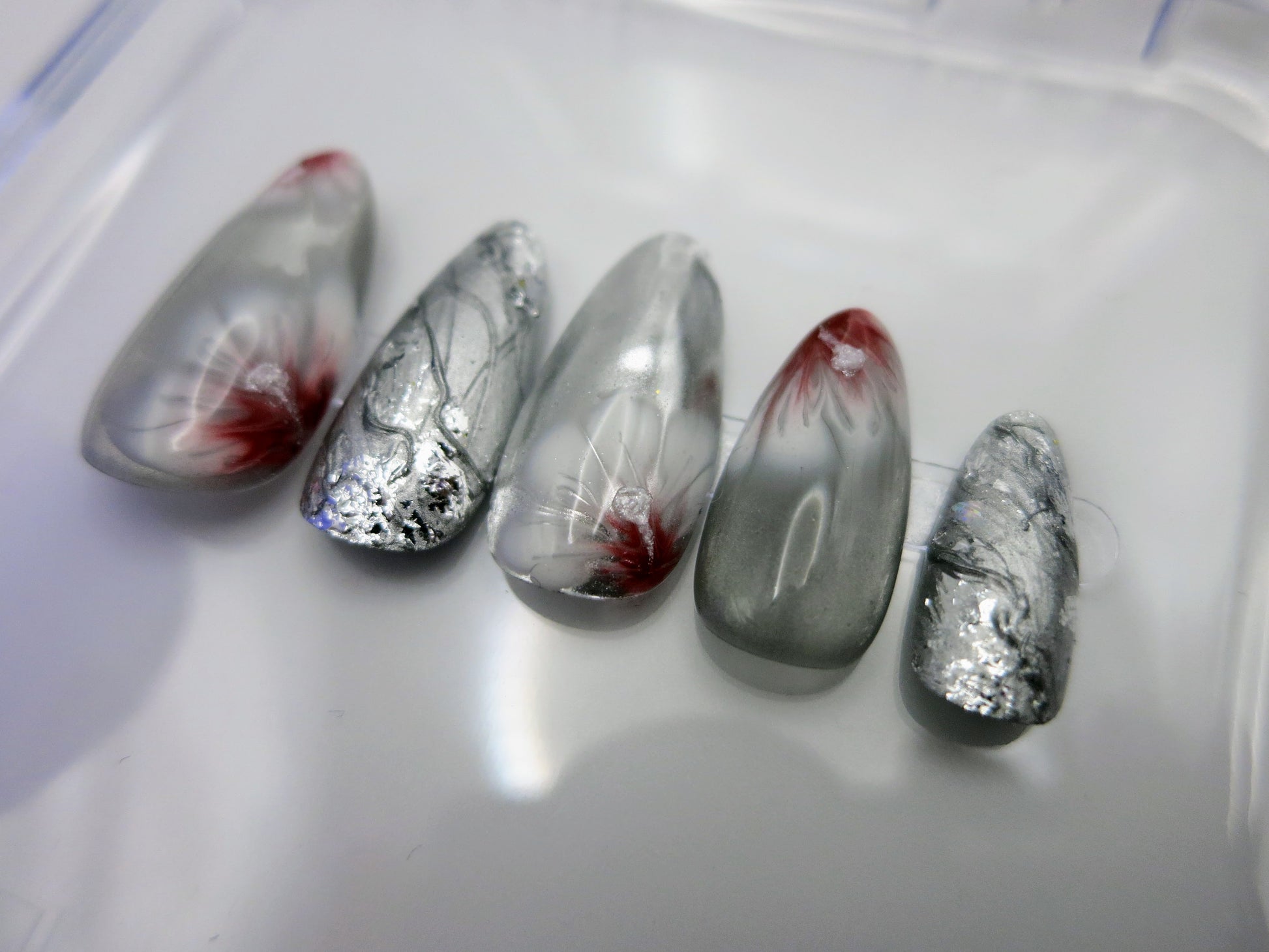 Product availability (discontinuation of polish colors, charms, etc.) can sometimes influence the outcome of a nail set as well. If there is a hiccup that will cause a set to be significantly different than is represented on the site, I will reach out before the order is started to confirm that you are OK with the change.