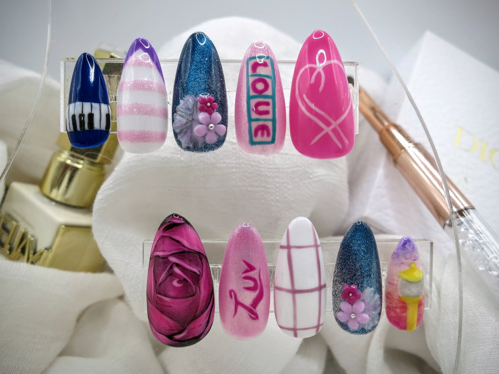 As for press-ons from Amazon, Walgreens, Temu, Shein...they are typically machine printed on thin, low quality tips that will bend and flex on removal, making them unusable a second time. Trust me, I started buying press-ons from Walmart decades ago before learning to do my own Gel X. Yes, they can look nice initially, but the prints will wear off and they won't last.